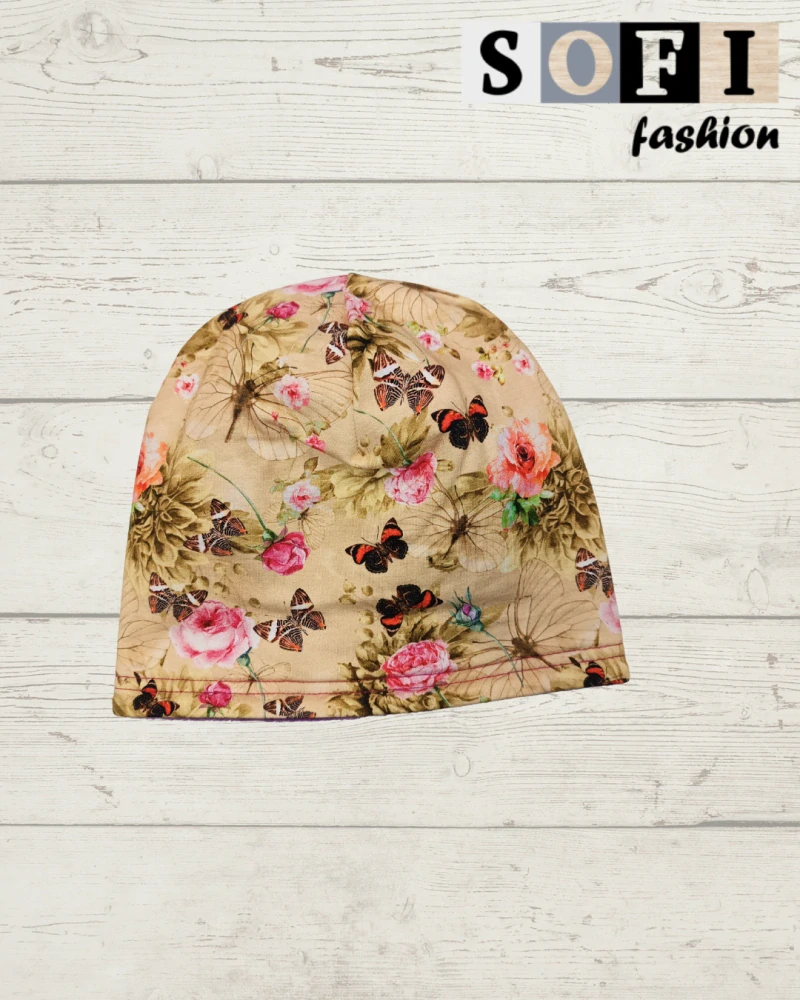 Čepice dvouvrstvá - motýl, květy na pískovéSkladem 1 ks250 Kč/ ks