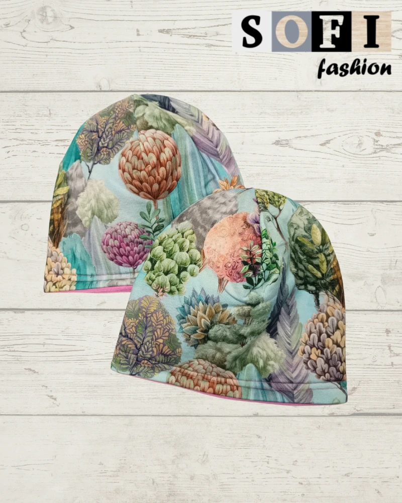 Čepice dvouvrstvá - pastelově zelené stromySkladem 3 ks250 Kč/ ks