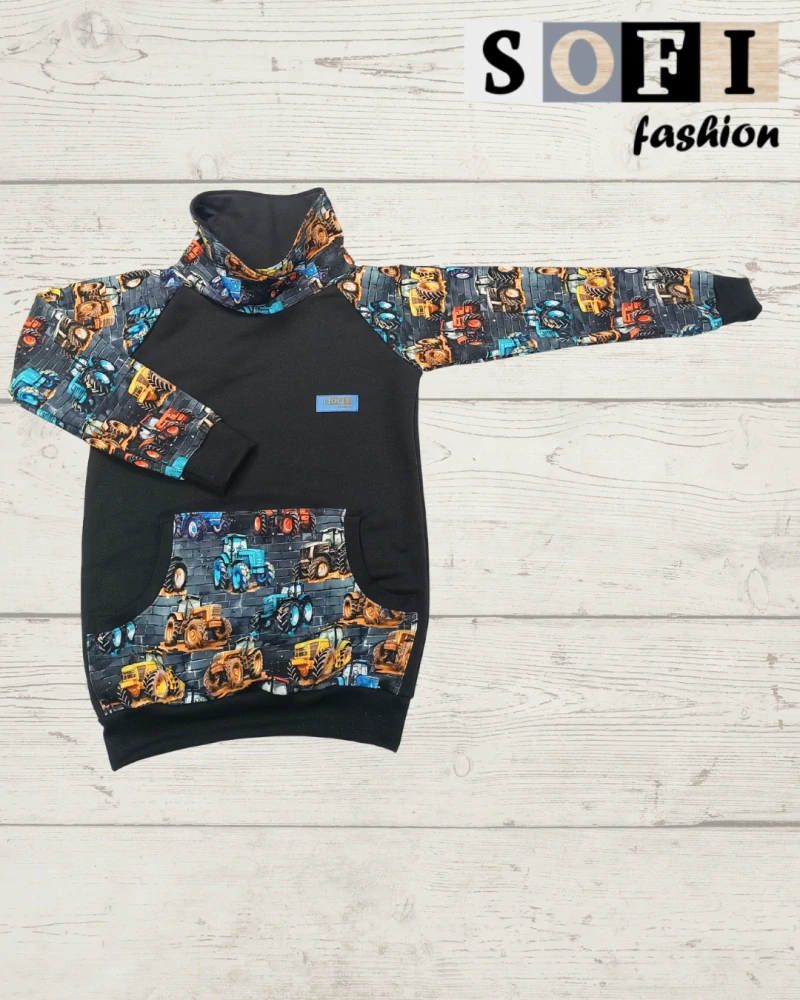 Mikina - barevný traktor (překřížený límec, klokanka)