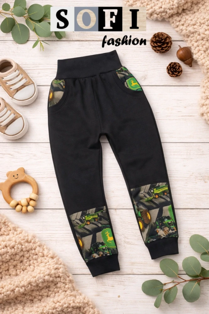 Tepláky baggy s kapsami - černé/ john deere