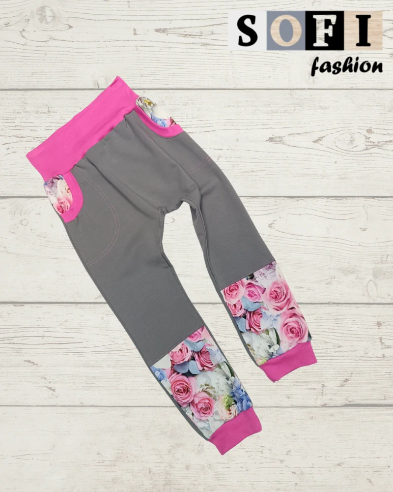 Tepláky baggy s kapsami - šedé s růžemiSkladem 1 ks460 Kč/ ks